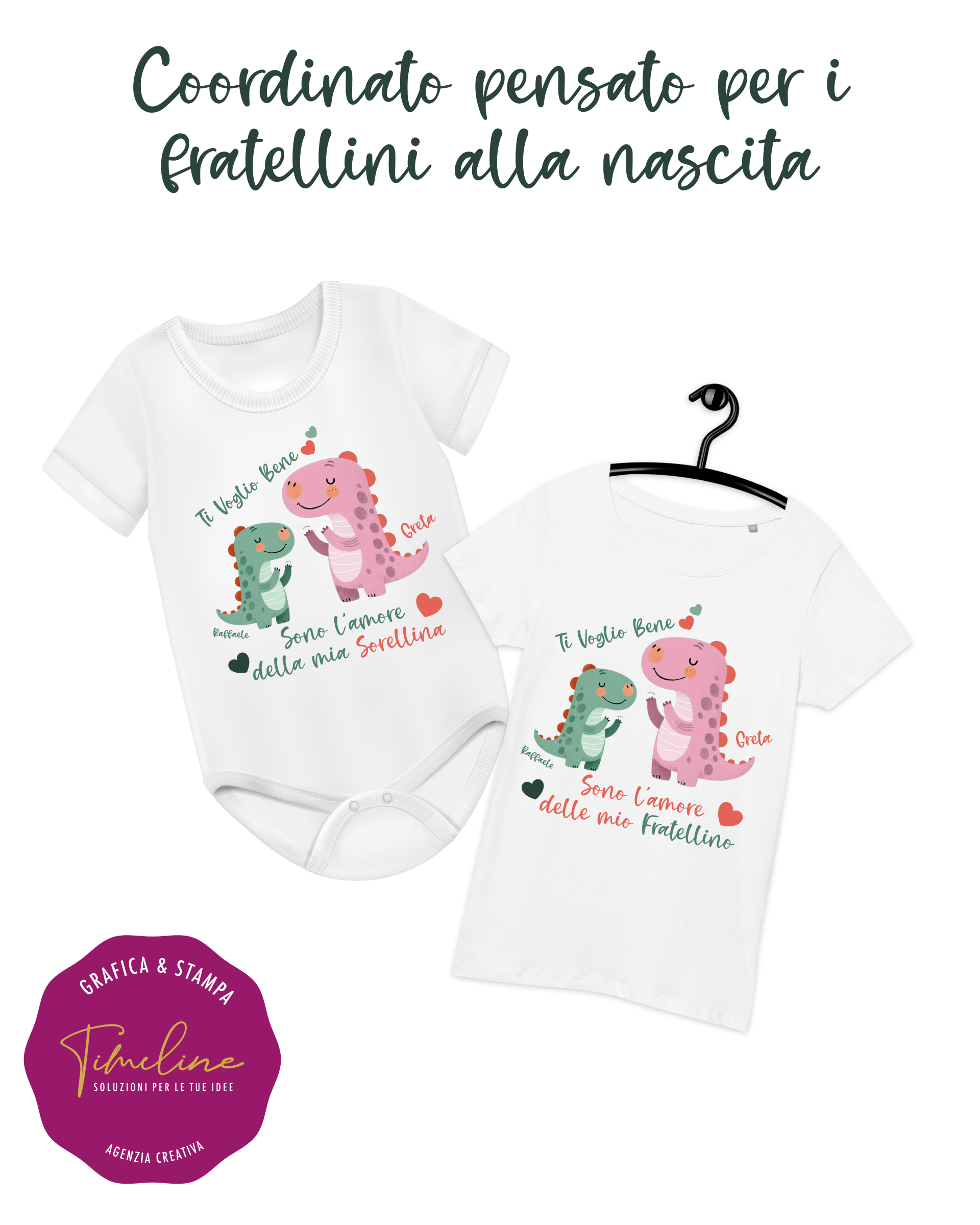 Il nostro coordinato personalizzato celebra l’arrivo di un nuovo fratellino o sorellina con colori, sorrisi e tanta tenerezza.