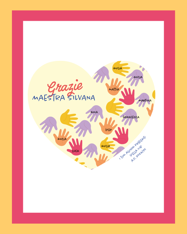 Puoi inserire il nome della maestra e i nomi dei bambini sulle manine