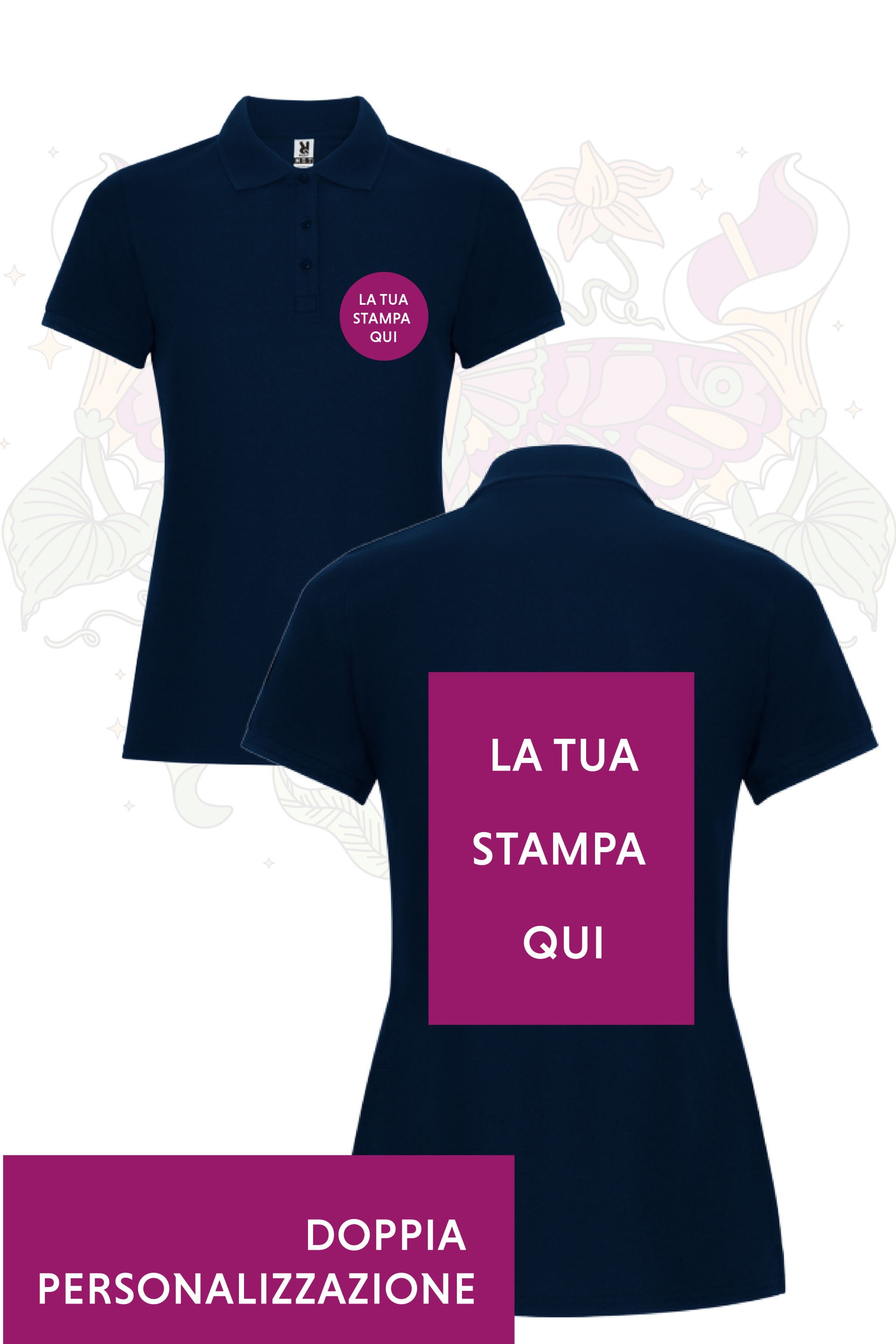 OPZIONI PERSONALIZZAZIONE: È possibile richiedere una modifica alla stampa: aggiungendo, oltre alla stampa lato cuore (12x12 cm), una stampa sulla schiena con dimensioni massime di 27 cm. In alternativa, si può optare per rimuovere la stampa lato cuore e stampare esclusivamente sulla schiena.