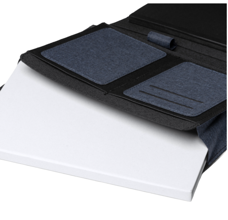 3 scomparti interni principali, 2 porta tessere e 1 portapenne. Confezione in scatola con design ecologico.